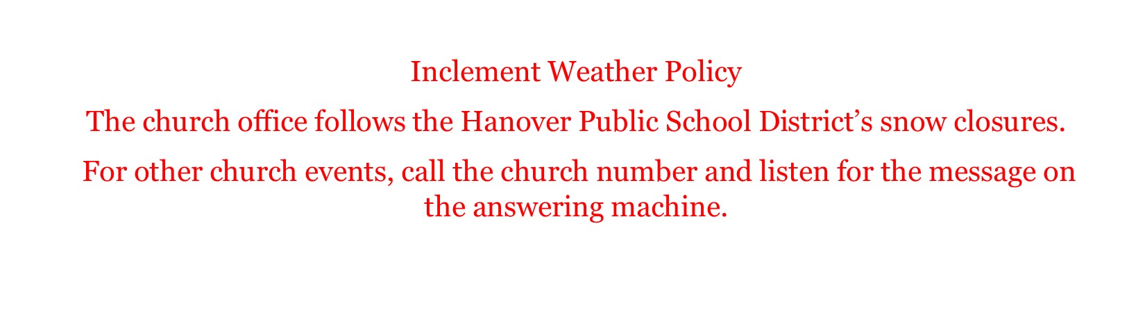 Inclement Weather Announcement